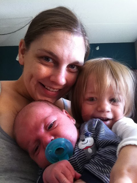 Kayla is doing pretty well with him. This morning she heard me talking to him about learning to roll during tummy time and it must have sunk in with her. Before we left the house today, Justin and I were on the hunt for a gift card and Brody was just content laying on the floor, in fact I think he was sleeping. All of the sudden I hear Justin say, "What are you doing, Kayla? Rolling him over and over again?" Apparently, Kayla was trying to teach him how to roll, by rolling him like a barrel along the living room floor. Sigh, one day she'll learn to be gentle with her brother.