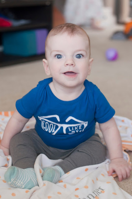 Eating/Sleeping: We are still on our normally nursing schedule and he is really such a happy baby almost all of the time. He had another double ear infection at like 5.5 months so we are still dealing with that along with learning to crawl which might be affecting his sleep. He still wakes up 1-2 times a night but almost always nurses and goes right back to sleep. Overall this has stayed pretty consistent but the time he wakes is never predictable still. But I can't complain and he is never really fussy!